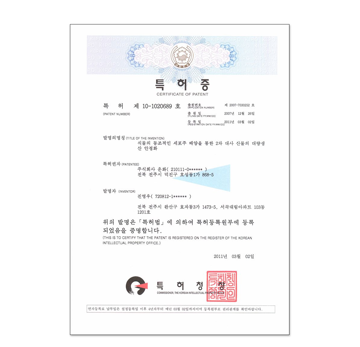 發行人 : 韓國知識產權局 (KIPO)