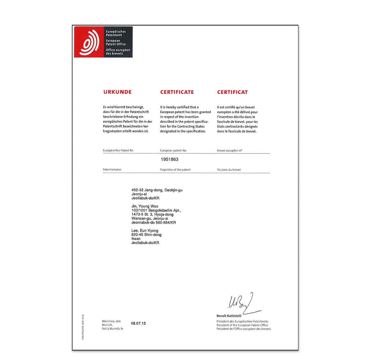 發行人 : 歐洲專利局